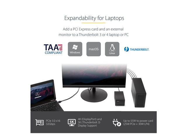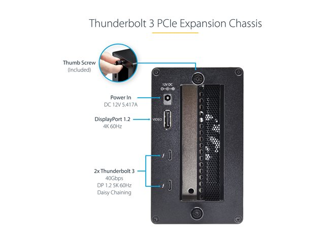 StarTech.com Thunderbolt 3 PCIe Expansion Chassis, External Enclosure Box with 1x PCI-Express Slot, 5K/4K Output Via TB3/DP Ports, TAA - Extension de bus système - DP - 65 Watt - pour P/N: TB3DK2DPM2, TB3DOCK2DPPD, TB3DOCK2DPPU