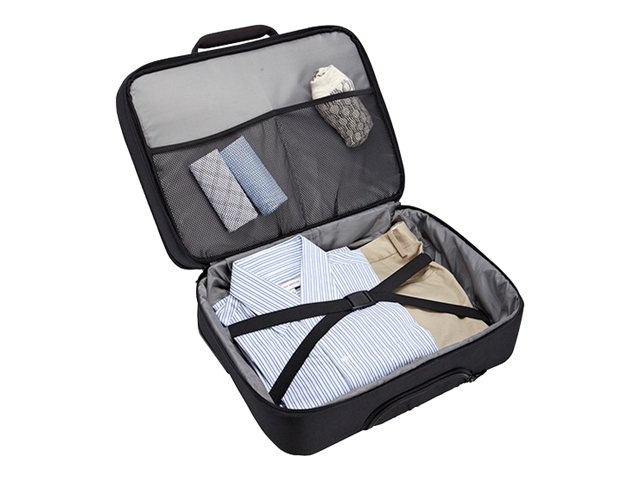 Conjuguant des lignes modernes et un côté purement pratique, cette valise à roulettes peut accueillir un ordinateur portable 17,3'' et un iPad ou une tablette 10,1", ainsi que tous les objets dont vous avez besoin pour votre voyage d'affaires. Elle offre aussi un espace pour transporter vos vêtements de rechange et vos outils de travail pour un séjour d'une nuit.
