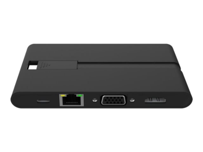 Mini station d'accueil universelle USB-C avec 9 ports : 1 x USB-C (données + charge PD); 1 x USB-C (données); 2 x ports USB-A 3.2; 1 x HDMI; 1 x VGA; 1 x Ethernet; 1 x slot carte SD; 1 x slot carte Micro SD.