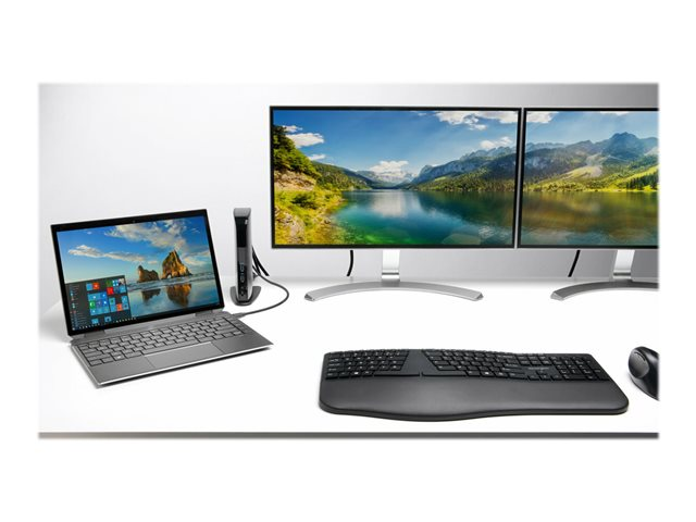 Les ordinateurs portables ultra-minces et les ordinateurs convertibles 2 en 1 comme le Microsoft Surface Pro sont synonymes de grande productivité, de mobilité et d'élégance, mais les ports de connectivité y font généralement défaut. Vous perdez donc du temps à brancher et débrancher vos périphériques. C'est là qu'intervient la station d'accueil universelle USB 3.0 SD3500v. Grâce à elle, transformez un port USB en six ports et accédez à tous vos périphériques : clavier, souris, imprimante, disque dur externe, etc. La sortie vidéo HD double vous permet également d'ajouter deux écrans externes pour augmenter votre productivité. Les deux ports USB 3.0 de cette station autorisent des transferts de données ultra-rapides allant jusqu'à 5 Gbits/s.
