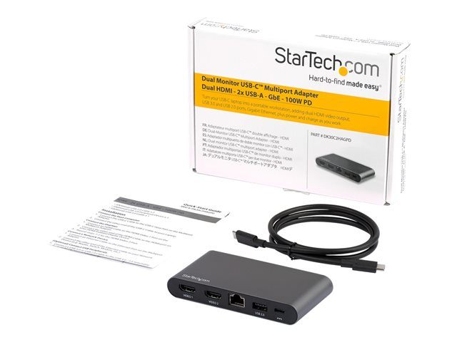 StarTech.com Dock USB C - Station d'Accueil USB-C à Double Écran 4K HDMI - 100 W Power Delivery Pass-through, GbE, 2 USB A - Mini Hub Type C - Adaptateur Multiport pour PC Portable (DK30C2HAGPD) - Station d'accueil - USB-C - 2 x HDMI - 1GbE - pour P/N: ARMBARDUO, ARMBARDUOV, ARMDUAL, ARMDUAL30, ARMDUALV, ARMSLIMDUO