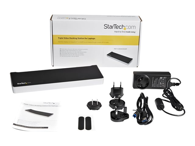 StarTech.com Station d'accueil USB 3.0 triple affichage PC portable - Réplicateur de ports USB 3.0 universel avec 3 sorties vidéo - 4K - Station d'accueil - USB - 1GbE - pour P/N: ARMBARTRIO2, ARMTRIO, LTLOCK USB3DOCKH2DP