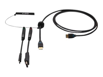 C2G 6ft (1.8m) 4K HDMI Premium Cable and Dongle Adapter Ring with Color Coded DisplayPort and USB-C - Kit d'adaptateur vidéo - noir - contacts flashés d'or, support pour 4K60Hz, support 4K 30 Hz (DisplayPort)