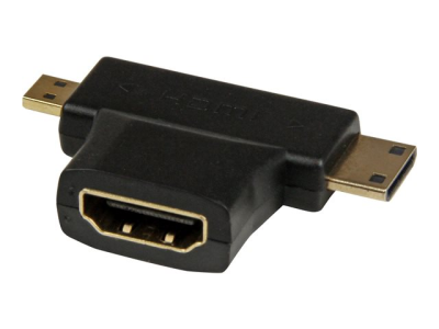 StarTech.com Adaptateur HDMI (Femelle) vers HDMI Mini (Mâle) / HDMI Micro (Mâle) - Noir, Plaqués Or - Adaptateur HDMI - HDMI mini, HDMI micro (M) pour HDMI (F) - 3.16 cm - noir - pour P/N: HDMM30CM HDACDFMM