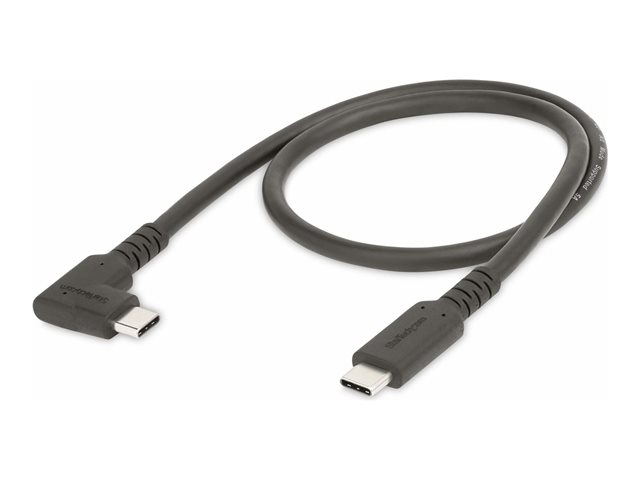 Connectez une source USB 10 Gbps et des périphériques, à l'aide de ce câble USB Type-C robuste à angle droit. Positionnez la connexion USB-C à angle droit le long de l'appareil pour réduire l'encombrement des câbles et éviter les tensions prolongées dues à la flexion.