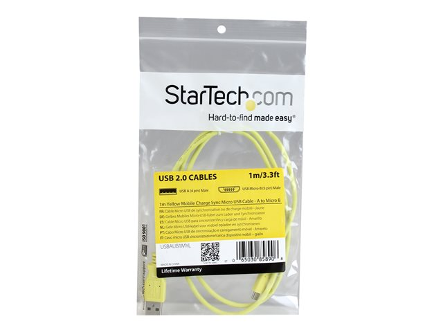 StarTech.com Câble de charge /synchronisation mobile USB A vers Micro B slim 1 m - Cordon USB 2.0 pour smartphone / tablette M/M - Jaune - Câble USB - Micro-USB de type B (M) pour USB (M) - USB 2.0 - 1 m - jaune USBAUB1MYL