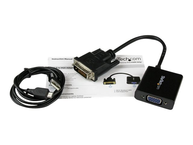StarTech.com Câble adaptateur actif DVI vers VGA - Convertisseur DVI-D vers HD15 - Mâle / Femelle - 1080p - Noir - Adaptateur vidéo - DVI-D, Micro-USB de type B (alimentation uniquement) pour HD-15 (VGA) (F) - 24.8 m - actif, support 1920 x 1200 (WUXGA) - noir DVI2VGAE