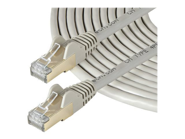 StarTech.com 10m CAT6A Ethernet Cable, 10 Gigabit Shielded Snagless RJ45 100W PoE Patch Cord, CAT 6A 10GbE STP Network Cable w/Strain Relief, Grey, Fluke Tested/UL Certified Wiring/TIA - Category 6A - 26AWG (6ASPAT10MGR) - Cordon de raccordement - RJ-45 (M) pour RJ-45 (M) - 10 m - STP - CAT 6a - moulé, sans crochet - gris