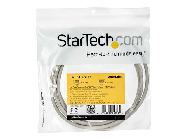 StarTech.com Câble réseau Cat6 Gigabit UTP sans crochet de 2m - Cordon Ethernet RJ45 anti-accroc - Câble patch Mâle / Mâle - Gris - Cordon de raccordement - RJ-45 (M) pour RJ-45 (M) - 2 m - UTP - CAT 6 - sans crochet - gris