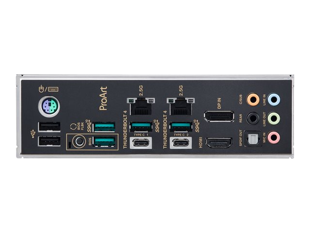| Interfaces | 2 x LAN (2.5Gigabit Ethernet) 1 x entrée de ligne audio - mini-jack 1 x sortie de ligne audio - mini-jack 1 x microphone - mini-jack 1 x TOSLINK 2 x USB 2.0 4 x USB 3.2 Gen 2 1 x sortie de ligne audio (centre/caisson de basses) - mini-jack 1 x sortie de ligne audio (arrière) - mini-jack 1 x entrée DisplayPort 1 x HDMI 2 x Thunderbolt 4/USB-C Gen2 1 x clavier / souris PS/2 |