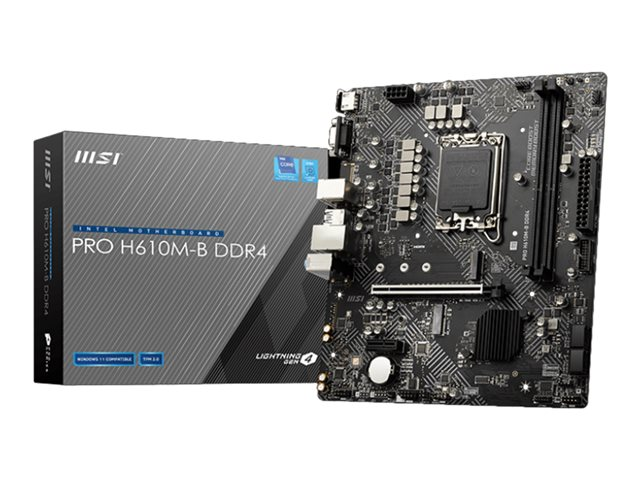 MSI PRO H610M-G DDR4 - Carte-mère - micro ATX - Socket LGA1700 - H610 Chipset - USB 3.2 Gen 1 - Gigabit LAN - carte graphique embarquée (unité centrale requise) - audio HD (8 canaux)