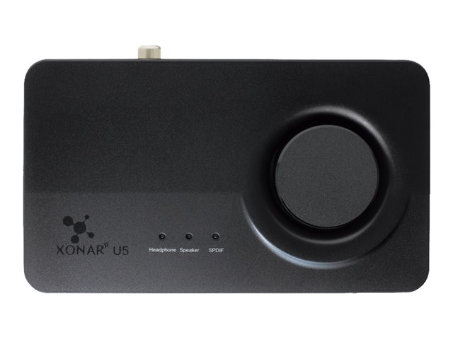 Xonar U5 est une carte son compacte alimentée par USB doublée d'un amplificateur de casque proposant un véritable son Surround 5.1 canaux de 192kHz/24-bit en haute définition. Elle inclut aussi la technologie Perfect Voice, un micro dédié et des contrôles du volume de sortie pour profiter pleinement des jeux, de la musique et des films. Xonar U5 est livré avec Sonic Studio, un puissant logiciel de configuration qui offre un contrôle total de l'expérience audio via une élégante interface utilisateur.