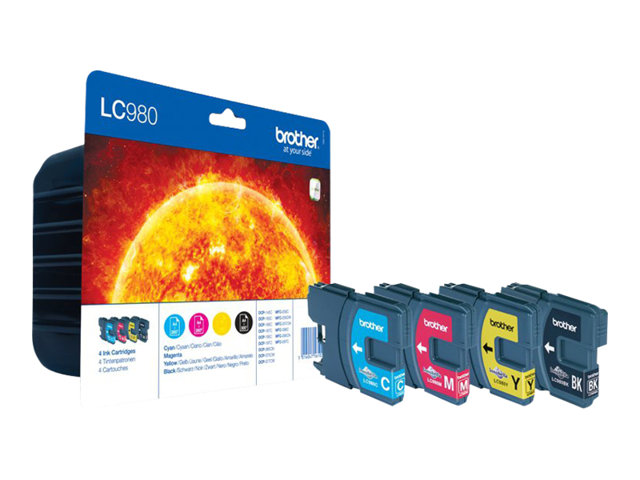 Brother LC980VALBPDR - Pack de 4 - noir, jaune, cyan, magenta - original - blister - cartouche d'encre - pour Brother DCP-145, 163, 165, 195, 365, 373, 375, 377, MFC-250, 255, 290, 295, 297