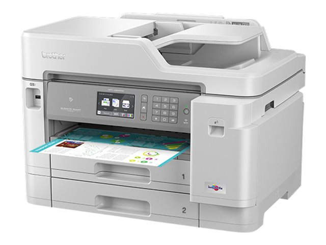 Le MFC-J5945DW répond à tous les besoins des entreprises grâce à des performances fiables et de haute qualité. Imprimez jusqu'au format A3, et facilitez vos numérisations et copies avec le chargeur automatique de documents A4 d'une capacité de 50 feuilles, vous permettant d'être plus productif dans vos activités quotidiennes. Avec son écran couleur tactile de 9,3 cm, ce multifonction jet d'encre couleur 4-en-1 vous permet d'accéder facilement aux fonctionnalités dont vous avez besoin pour votre entreprise.
