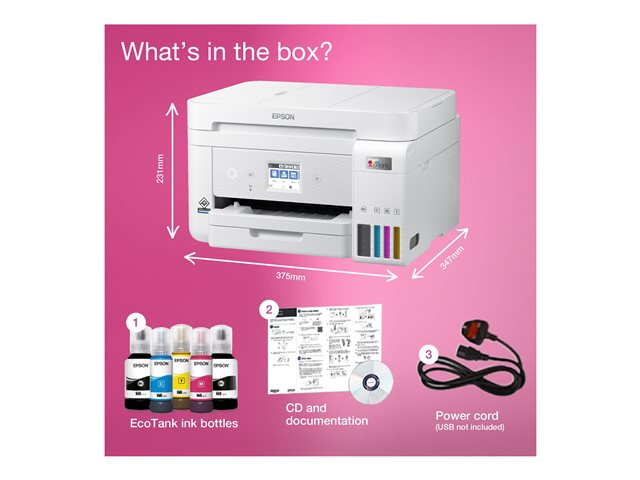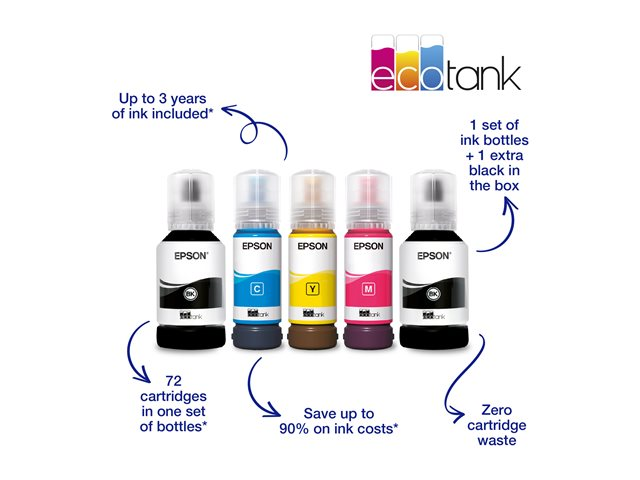 Économisez jusqu'à 90 % sur vos coûts d'impression avec les imprimantes et multifonctions EcoTank sans cartouche d'Epson. Fourni avec des bouteilles d'encre haute capacité, ses réservoirs d'encre intégrés sont faciles à remplir grâce aux bouteilles d'encre spécialement conçues. Sans aucune cartouche à remplacer et doté de fonctionnalités de connectivité flexibles, d'un fax et d'un chargeur automatique de documents, ce multifonction est idéal pour les personnes qui recherchent des impressions de haute qualité et un coût par page incroyablement bas.