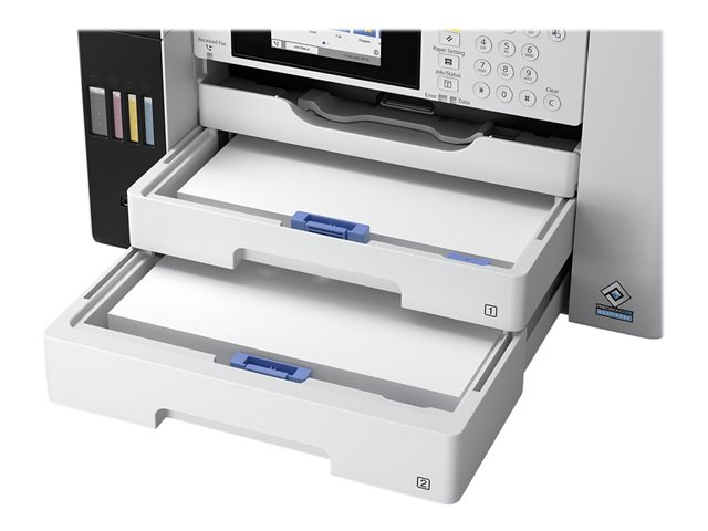 Ce modèle EcoTank Pro peut imprimer des milliers de pages avant de manquer d'encre, ce qui réduit le nombre de recharges. Deux magasins papier offrent une capacité totale de 500 feuilles. Libérez-vous des contraintes liées au chargement manuel des feuilles avec un magasin papier arrière de grande capacité (50 feuilles) ainsi qu'un chargeur automatique de documents.
