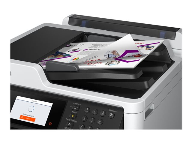 Elle accroît votre productivité métier grâce à des interventions réduites, un temps de sortie de la première page court, ainsi que des processus de flux de travail et des règles d'impression sécurisés, tout en réduisant vos coûts d'impression et votre impact environnemental. Des cartouches d'encre haute capacité offrant jusqu'à 50 000 pages en noir et 20 000 pages en couleur, une numérisation recto-verso rapide et une large palette de solution de flux de travail pour les entreprises sont les atouts principaux de ce puissant modèle professionnel.