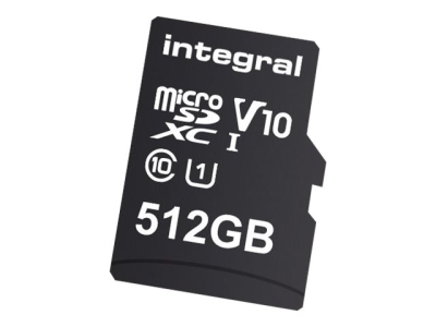 Integral - Carte mémoire flash (adaptateur microSDXC vers SD inclus(e)) - 512 Go - Video Class V10 / UHS-I Class 1 / Class10 - microSDXC UHS-I