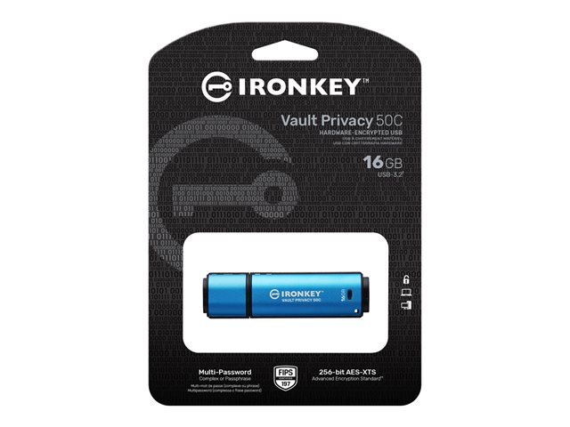 Kingston IronKey Vault Privacy 50C - Clé USB - chiffré - 16 Go - USB-C 3.2 Gen 1 - Conformité TAA IKVP50C/16GB