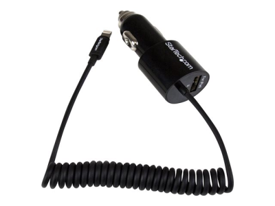 StarTech.com Chargeur voiture double - Adaptateur allume cigare avec câble Lightning et port USB 2.0 - Haute puissance 21W / 4,2A - Noir - Adaptateur d'alimentation pour voiture - 21 Watt - 4.2 A (USB, Lightning) - noir - pour P/N: USBLT1MW, USBLT1MWS, USBLT2MBR, USBLT2MW, USBLT30CMW, USBLTM1MBK, USBLTM1MWH