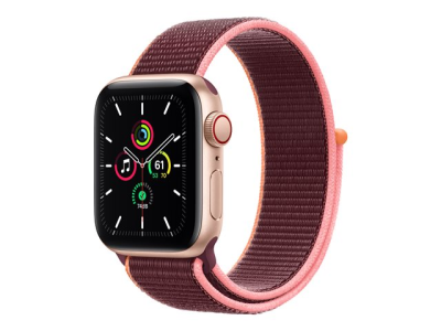 Apple Watch SE (GPS + Cellular) - 40 mm - or-aluminium - montre intelligente avec boucle sport - nylon - lie-de-vin - taille du poignet : 130-200 mm - 32 Go - Wi-Fi, Bluetooth - 4G - 30.68 g MYEJ2NF/A