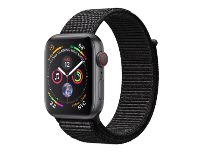 Apple Watch Series 4 (GPS + Cellular) - 44 mm - espace gris en aluminium - montre intelligente avec boucle sport - nylon tissé - noir - taille de bande 145-220 mm - 16 Go - Wi-Fi, Bluetooth - 4G - 36.7 g