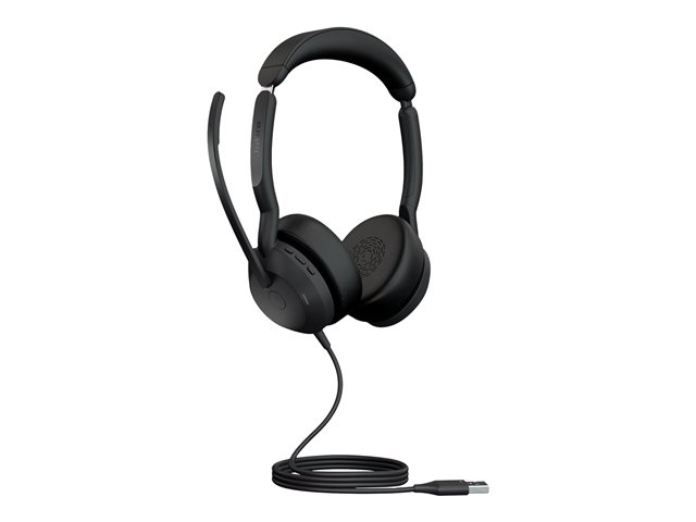Jabra Evolve2 50 UC Stereo - Micro-casque - sur-oreille - Bluetooth - filaire - Suppresseur de bruit actif - USB-A - noir - certifié Zoom, Cisco Webex Certified, Optimisé pour la CU, Optimisé pour Google Meet, Optimisé pour Microsoft Teams, Certifié Alcatel-Lucent, Certifié Avaya, Certifié Unify, Certifié Amazon Chime