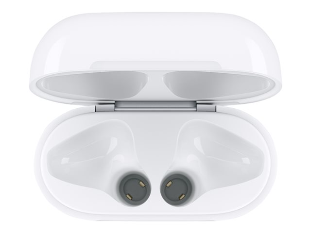 Avec le boîtier de charge sans fil, rechargez facilement vos AirPods en les plaçant dans leur boîtier puis en posant celui-ci sur une station de charge compatible. Le témoin LED à l'avant du boîtier vous confirme que vos AirPods se rechargent. Et si vous n'avez pas de station de charge à proximité, vous pouvez utiliser le port Lightning pour effectuer la recharge. Le boîtier de charge sans fil fonctionne avec toutes les générations d'AirPods et permet plusieurs charges.
