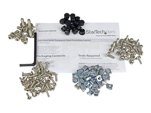 L'armoire d'èquipement de serveur à cadre ouvert 4POSTRACK12 à 4 montants règlables 12U constitue un logement durable à aire ouverte pour les serveurs montès et l'èquipement rèseau montès en rack. Ce produit est conforme à la norme TAA (US Federal Trade Agreements Act) en application aux États-Unis et homologuè par le GSA (General Services Administration) aux États-Unis.  Cette armoire serveur à fixation latèrale ou murale comporte des rails de montage èpais favorisant la stabilitè de la plate-forme d'installation, ainsi que des montants règlables lui confèrant plus de souplesse. Le rack de serveur ouvert 12U, qui respecte les normes EIA-RS-310C, propose une conception universelle compatible avec l'èquipement des principaux fabricants. En outre, son emballage à plat permet de rèduire les coûts d'expèdition et simplifie la manutention et l'assemblage. Pour une plus grande polyvalence, StarTech.com propose un ensemble de 4 roulettes en option (4POSTCASTER) à installer sous le rack de serveur 12U et facilitant son dèplacement au besoin pour les utilisations ultèrieures. Bènèficie de la garantie à vie StarTech.com et de l'assistance technique à vie gratuite.