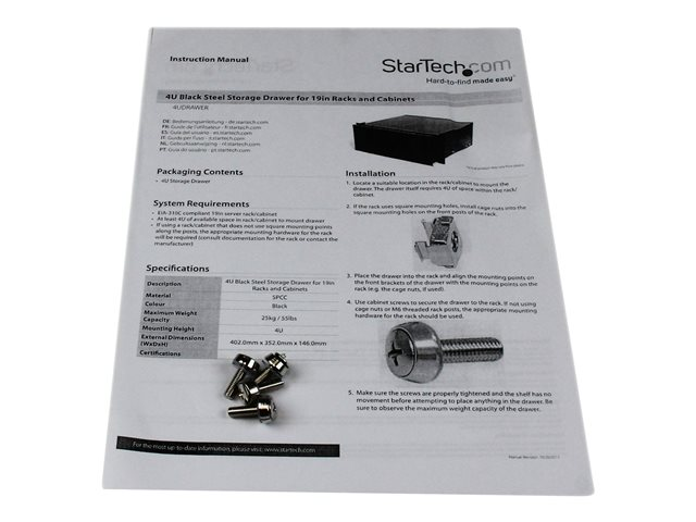 Tiroir de Montage en Rack 4U - 25 kg - Tiroir de Stockage en Rack 4U en Acier pour Rack ou Armoire 19" AV / Serveur / Équipement Réseau (4UDRAWER).