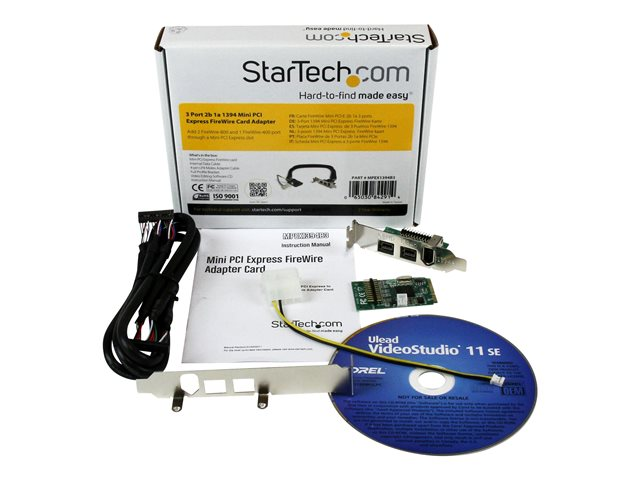 La carte FireWire Mini PCI Express 3 ports MPEX1394B3 est un adaptateur PCI Express vers FireWire-800/FireWire-400 qui vous permet d'ajouter une connectivité FireWire externe à des systèmes très compacts ou intégrés. La carte FireWire PCI-E offre deux ports FireWire-800 et un port FireWire-400. Cette carte prend en charge les derniers périphériques de stockage FireWire externes à des vitesses de transfert pouvant atteindre 800 Mb/s. Utilisant le format Mini PCI Express (mini carte), cette carte a été conçue pour être utilisée dans les systèmes informatiques compacts les plus récents, comme Mini-ITX ou les solutions intégrées personnalisées dans lesquelles une carte PCI Express normale ne pourrait pas se loger. Bénéficie de la garantie StarTech.com de 2-ans et de l'assistance technique à vie gratuite.