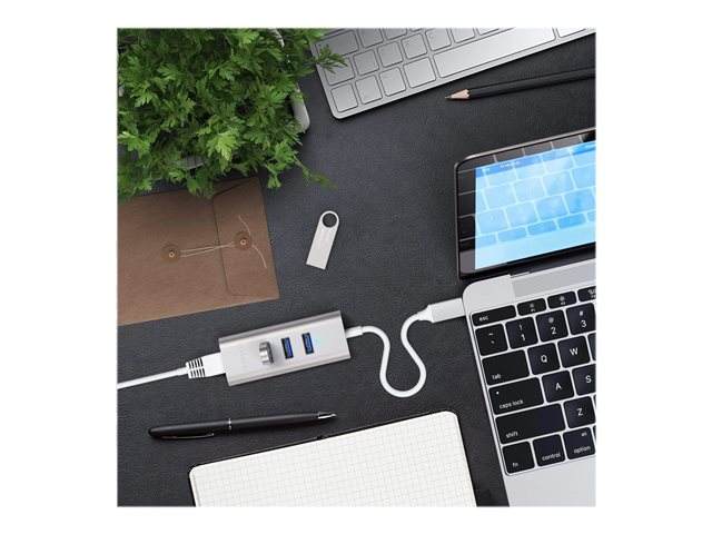 Satechi ST-TC2N1USB31AS - Concentrateur (hub) - 3 x SuperSpeed USB 3.0 + 1 x 10/100/1000 - de bureau