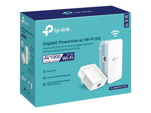 TP-Link TL-WPA7517 KIT V1 Wi-Fi Kit - - kit d'adaptation pour courant porteur - - 1GbE, HomePlug AV (HPAV), HomePlug AV (HPAV) 2.0, IEEE 1901 - Wi-Fi 5 - Bi-bande - Branchement mural - avec TP-Link TL-PA7010 TL-WPA7517 KIT