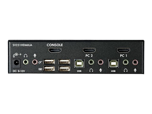 Le commutateur 2 ports USB HDMI SV231HDMIUA vous permet de contrôler deux ordinateurs ou périphériques compatibles USB et dotés d'interfaces vidéo HDMI, à l'aide d'une seule console ou d'un ensemble de périphériques (clavier, souris, moniteur, haut-parleurs et microphones USB). Le commutateur USB HDMI KVM est une solution KVM véritablement polyvalente, il est doté d'un concentrateur USB 2 ports intégrés qui permet à certains ordinateurs d'accéder à des périphériques USB haute vitesse partagés, supprimant ainsi le coût engendré par des achats supplémentaires de périphériques USB. Garantissant une capacité vidéo de haute qualité, le commutateur HDMI KVM prend en charge des résolutions HD d'au plus 1920 x 1200. Ce commutateur offre une excellente transmission du signal numérique, il peut être utilisé pour partager un panneau HD entre plusieurs sources HDMI, telles que les lecteurs Blu-Ray, les consoles de jeux vidéo et les médiathèques HD. Le commutateur prend également en charge les fonctions de commutation audio et microphone et vous permet de sélectionner des ordinateurs connectés, des ports du concentrateur du périphérique USB et des canaux audio et micro, de manière simultanée ou indépendante, à l'aide des boutons-poussoir du panneau avant ou des touches de raccourci du clavier. Bénéficie de la garantie StarTech.com de 3 ans et de l'assistance technique gratuite à vie.