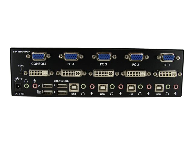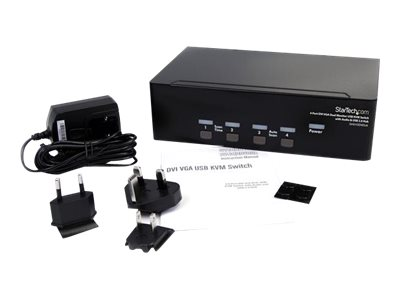 StarTech.com Commutateur KVM USB et double écran DVI / VGA à 4 ports avec audio et hub USB 2.0 - Switch écran clavier souris - Commutateur écran-clavier-souris/audio/USB - 4 x KVM / audio / USB - 1 utilisateur local - de bureau - pour P/N: IM12D1500P, SVA12M2NEUA, SVA12M5NA, USBDVI4N1A6, USBVGA4N1A10, USBVGA4N1A6 SV431DDVDUA