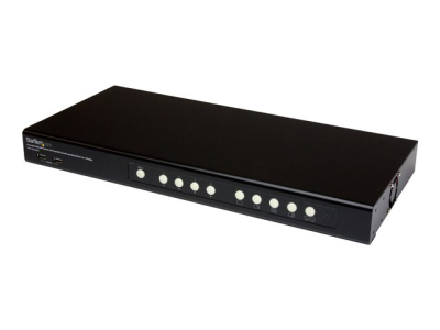 Le commutateur KVM intègre des commandes par boutons-poussoirs sur la façade avant permettant de basculer simplement d'un PC à l'autre, en choisissant votre mode d'affichage et en accédant au menu KVM, en plus de bénéficier de raccourcis clavier et de la prise en charge de commandes RS-232 pour un contrôle flexible.