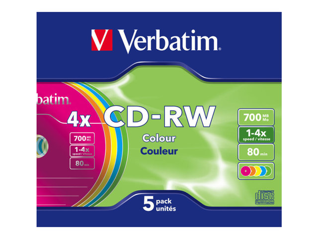 Verbatim - 5 x CD-RW - 700 Mo (80 min) 4x - boîtier CD étroit 43133